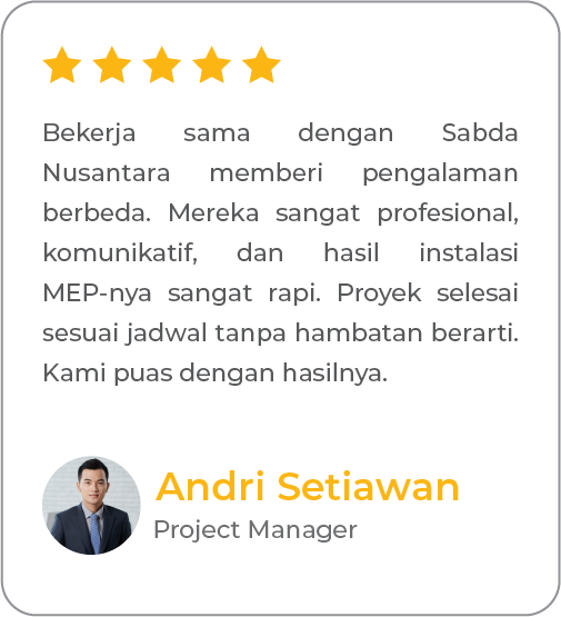 Sabda Nusantara menyatukan konsultansi dan konstruksi MEP, memastikan proyek lancar dari desain hingga implementasi dengan mutu terjaga, efisiensi optimal, dan dukungan purna jual.